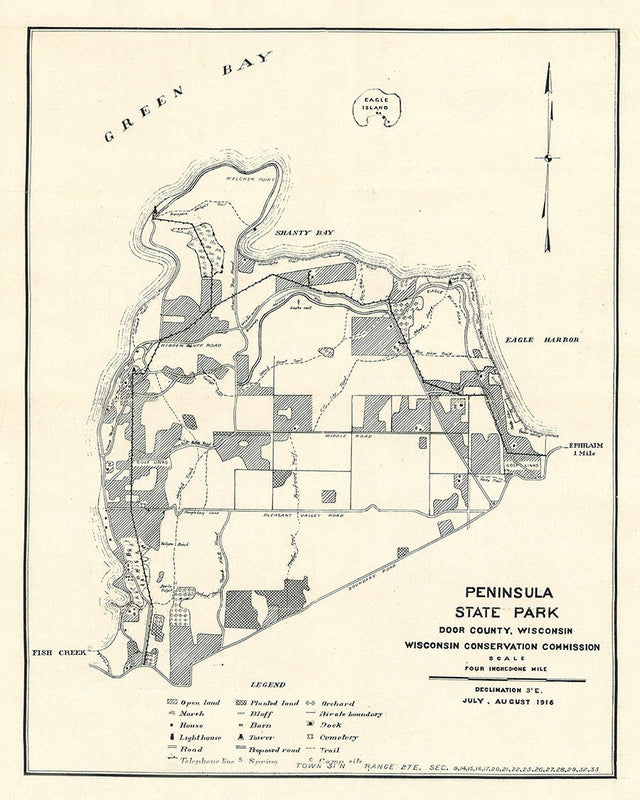 1916 Map of Door County Wisconsin Peninsula State Park - Heavy Weight Matte is backordered and will ship as soon as it is back in stock.