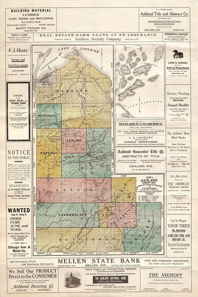 1917 Farm Line Map of Ashland County Wisconsin - Heavy Weight Matte is backordered and will ship as soon as it is back in stock.