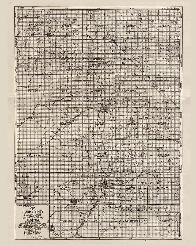 1917 Farm Line Map of Clark County Wisconsin Research Map - Heavy Weight Matte is backordered and will ship as soon as it is back in stock.