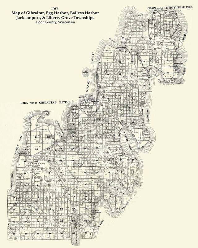 1917 Farm Line Map of Northern Door County Wisconsin