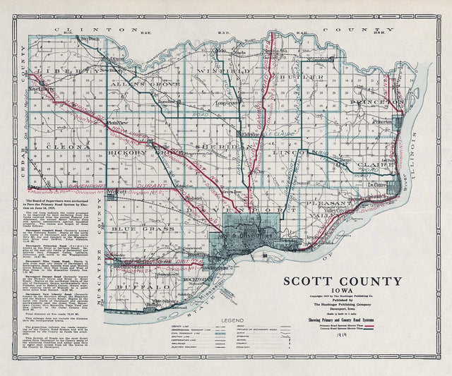1919 Map of Scott County Iowa - 16" x 20" Matte is backordered and will ship as soon as it is back in stock.