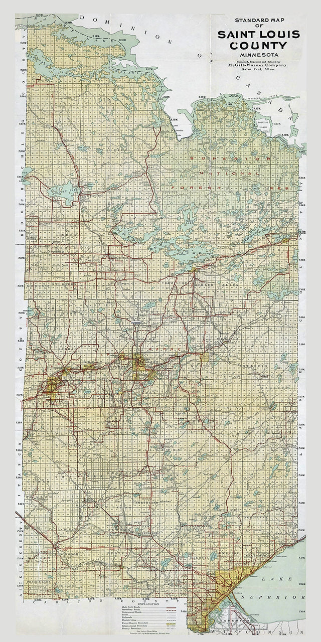 This map shows roads, railroads, water ways, lakes, towns, schools, and more.