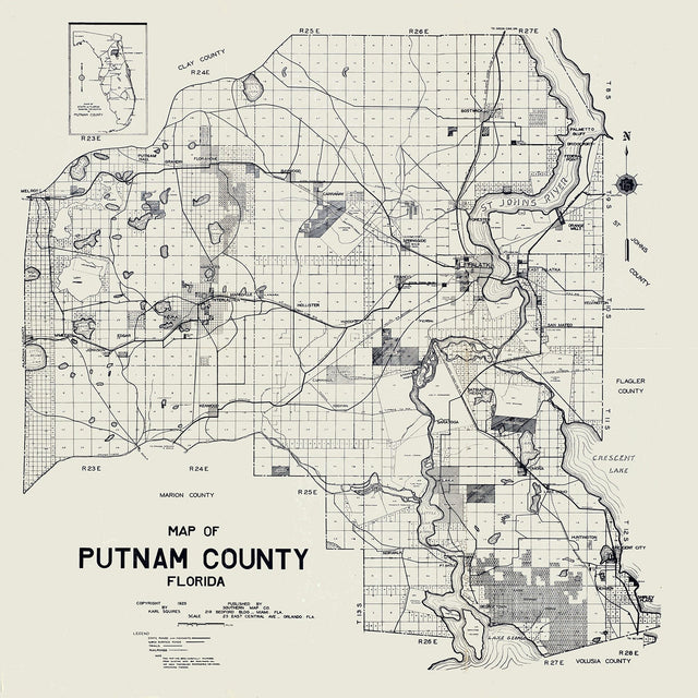 1925 Farm Line Map of Putnam County Florida - 24" x 24" Matte is backordered and will ship as soon as it is back in stock.