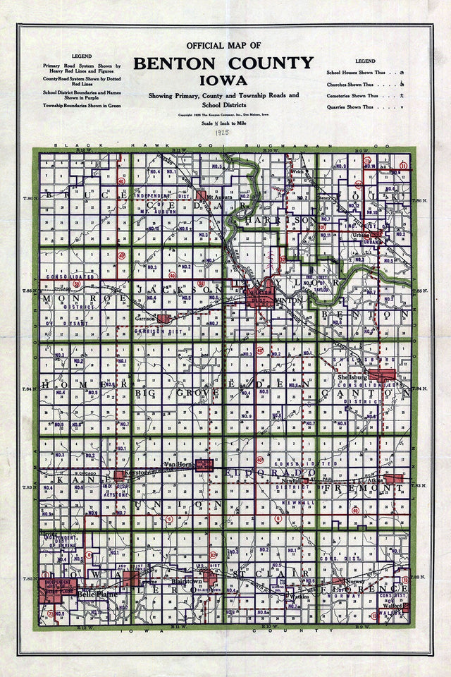 1925 Map of Benton County Iowa - 16" x 24" Matte is backordered and will ship as soon as it is back in stock.