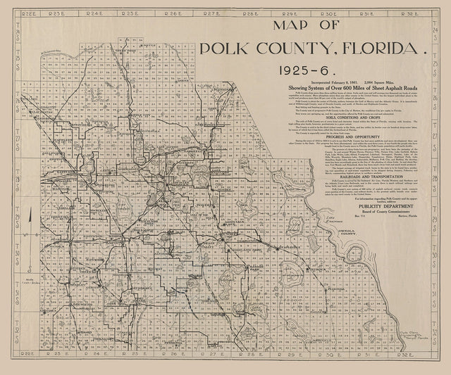 This map shows roads, boundary tracts, towns, lakes, lake names, and more.
