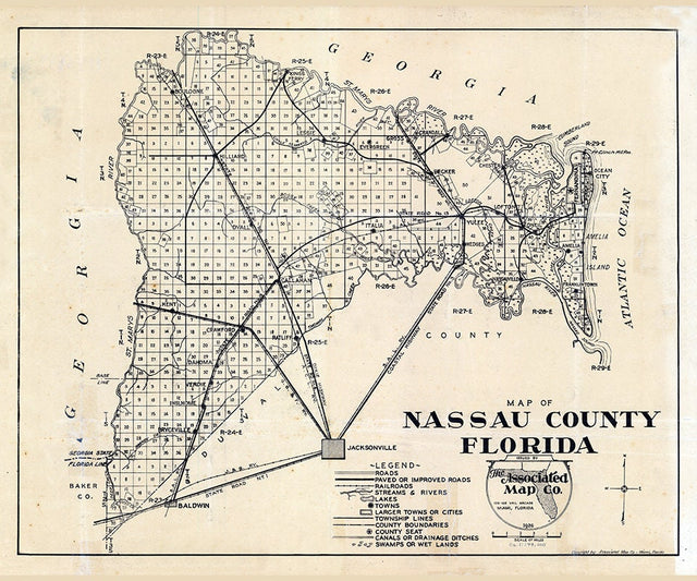 1926 Map of Nassau County Florida - 16" x 20" Matte is backordered and will ship as soon as it is back in stock.