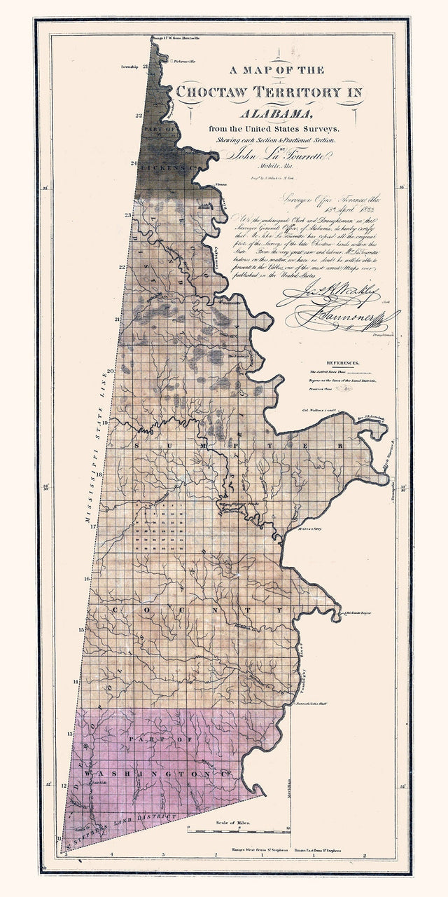 1933 Map of Choctaw Territory Alabama - 20" x 40" Matte is backordered and will ship as soon as it is back in stock.