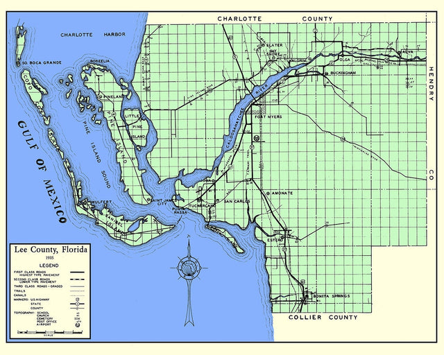 1935 Map of Lee County Florida Fort Myers - 16"x 20" Matte is backordered and will ship as soon as it is back in stock.
