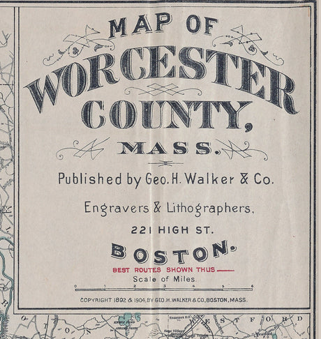 1904 Map of Worcester County Massachusetts
