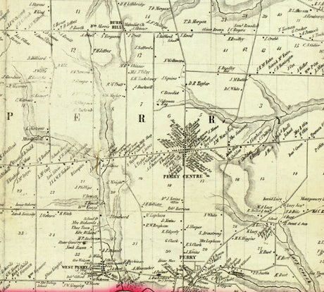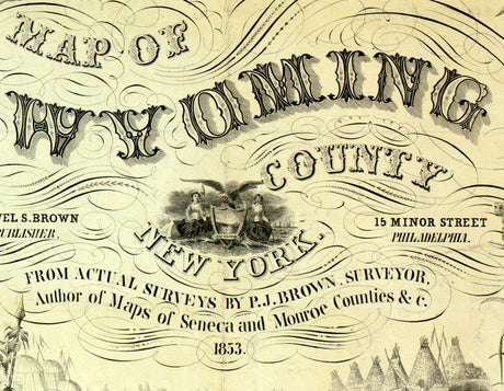 1853 Farm Line Map of Wyoming County NY from actual surveys Perry Village Warsaw Village