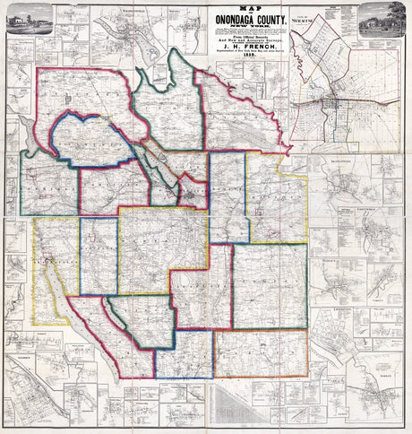 1852 Map of Onondaga County New York from actual surveys Syracuse