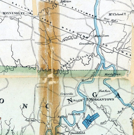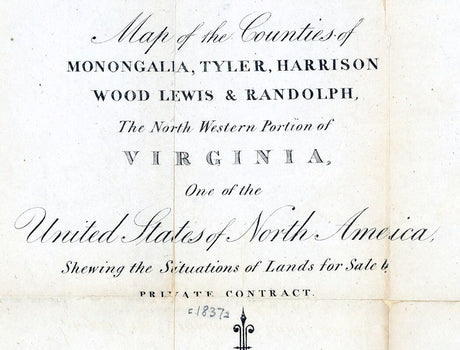 1837 Map of Monongahela Tyler Harrison Wood Lewis & Randolph County West Virginia