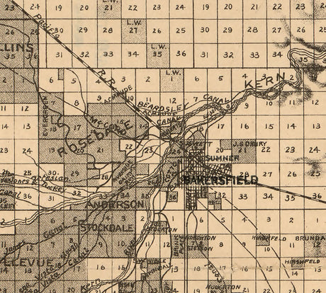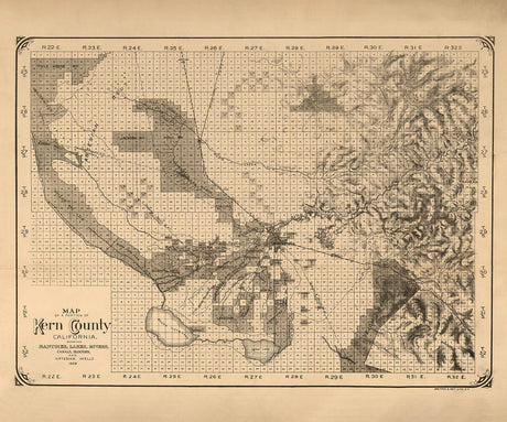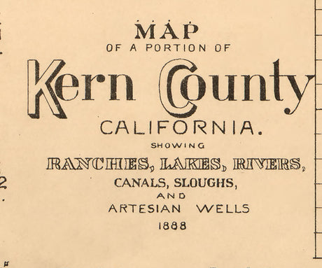 1888 Map of Part of Kern County California Bakersfield