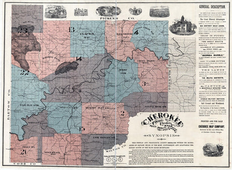 1895 Map of Cherokee County Georgia landowner reprint