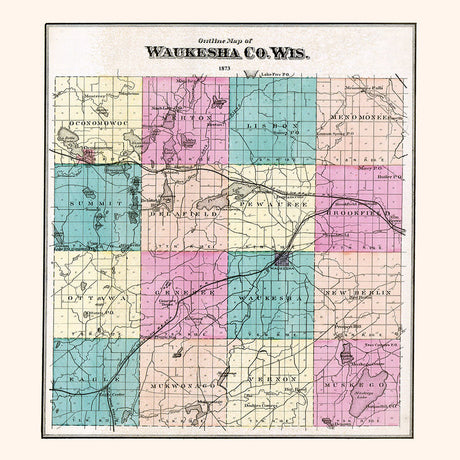 1873 Map of Waukesha County Wisconsin