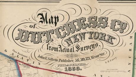 1858 Map of Dutchess County NY from actual surveys Poughkeepsie