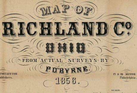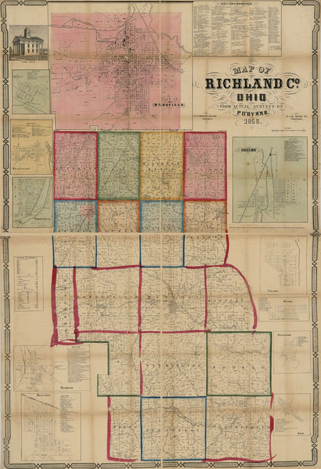 1856 Farm Line Map of Richland County Ohio Shelby Bell Ville