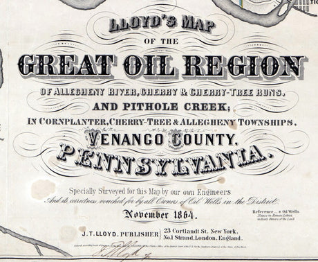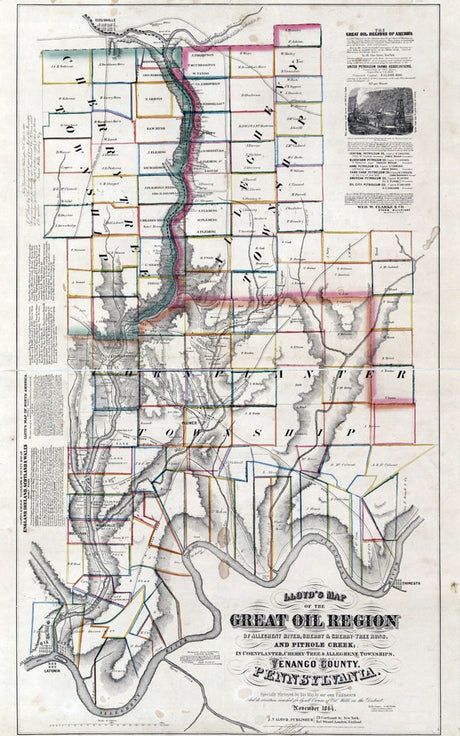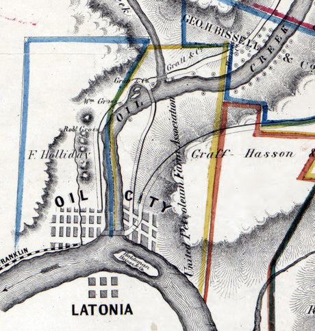 1864 Map of the great oil region of Allegheny River Venango County Pennsylvania