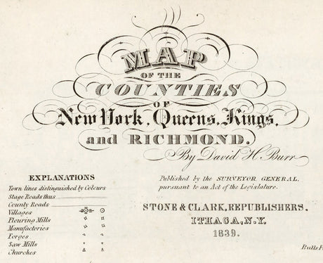 1839 Map of the Counties of New York Queens Kings and Richmond