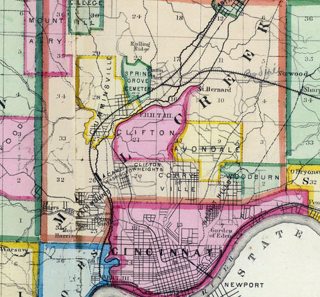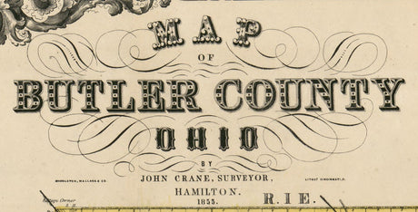 1855 Farm Line Map of Butler County Ohio Oxford Rossville