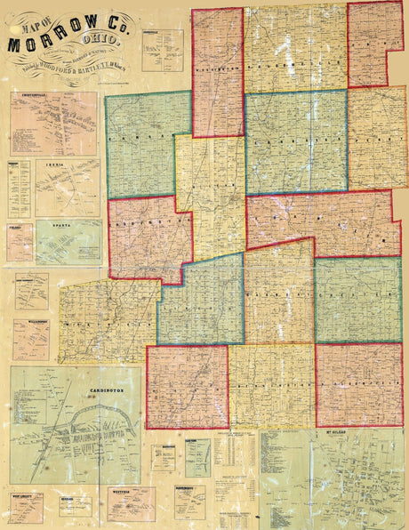 1857 Farm Line Map of Morrow County Ohio Mt Gilead