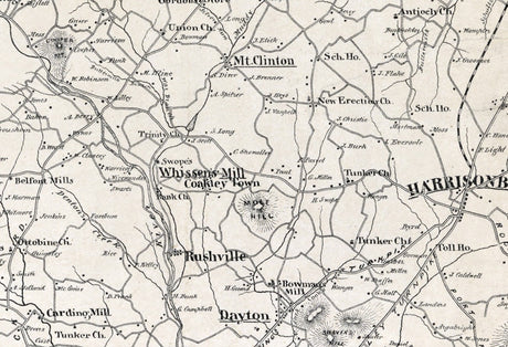 1875 Map of Rockingham County Virginia Harrisonburg Family Names Genealogy