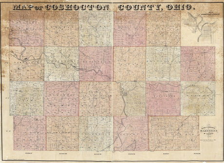 1850 Farm Line Map of Coshocton County Ohio Lewisville Farm Names