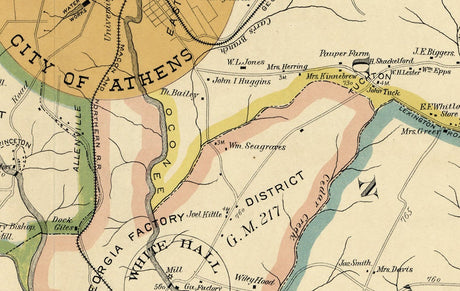 1898 Map of Clarke County Georgia Athens landowner reprint