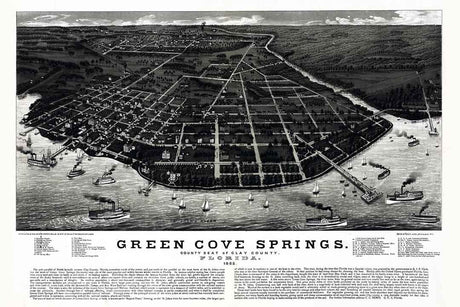 1885 Panoramic Map of Green Cove Springs Clay County Florida