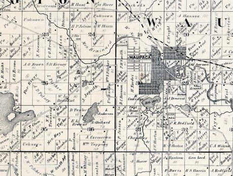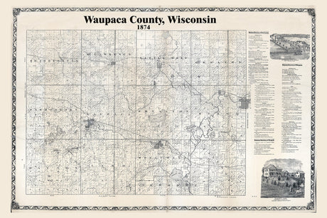 1874 Map of Waupaca County Wisconsin