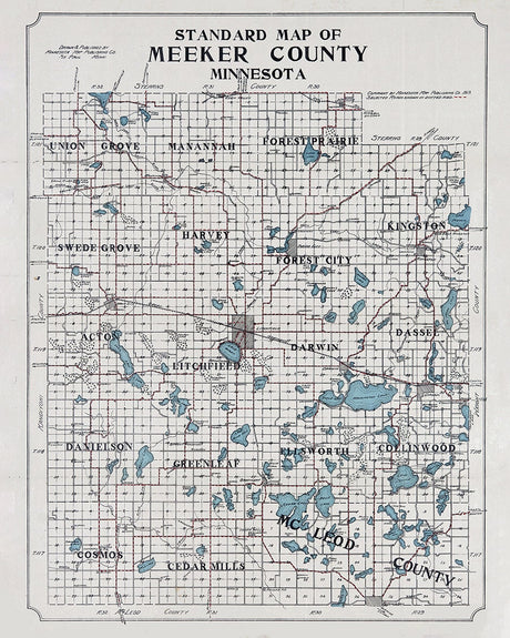 1914 Map of Meeker County Minnesota