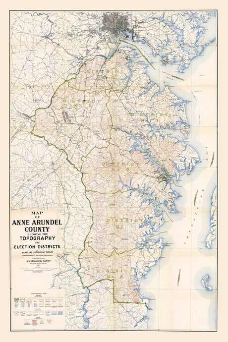 1917 Map of Anne Arundel County Maryland Topography