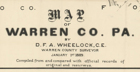 1889 Farm Line Map of Warren County PA