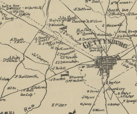 1858 Map of Adams County Pennsylvania Gettysburg Farm Names