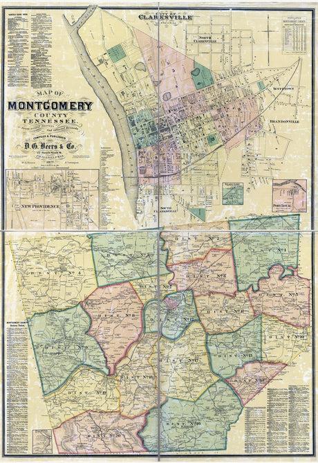 1877 Map of Montgomery County Tennessee Clarksville