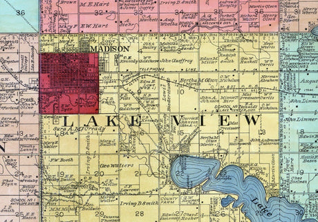1899 Map of Lake County South Dakota Madison