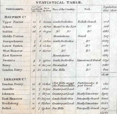 1818 Map of Dauphin & Lebanon County Pennsylvania