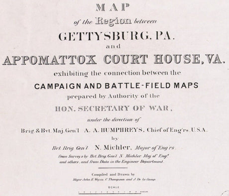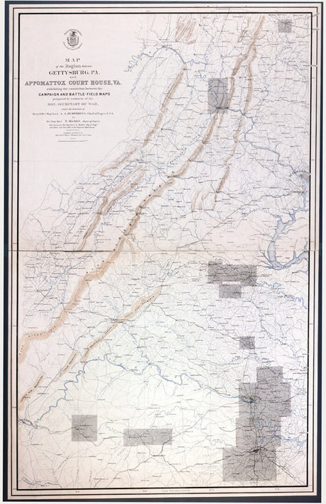1869 Map of Gettysburg PA and Appomattox Virginia