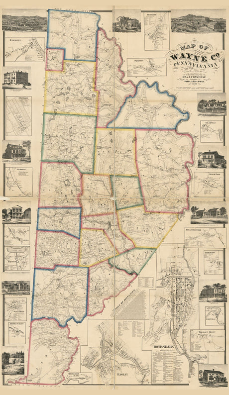 1860 Map of Wayne County Pa Honesdale Hawley Roll Map Genealogy