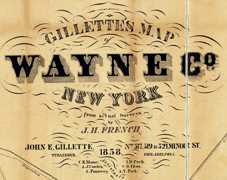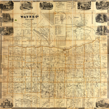 1858 Farm Line Map of Wayne County New York Lyons Newark Clyde