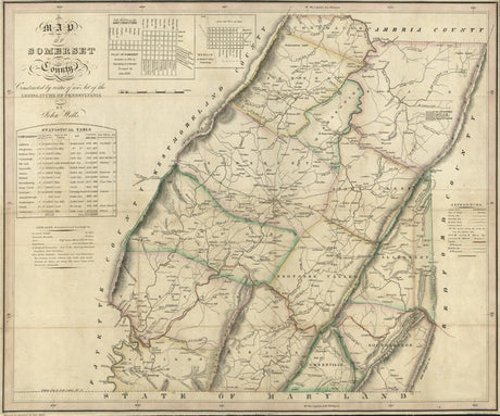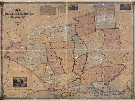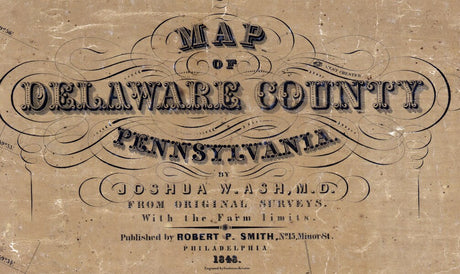 1848 Farm Line Map of Delaware County Pennsylvania from original surveys