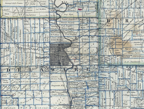 1849 Farm Line Map of Delaware County Ohio and Part of Marion and Morrow County
