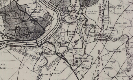 Early 1900s Farm Line and Coal Map of Fayette & Washington Co PA Along River