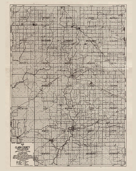 1917 Farm Line Map of Clark County Wisconsin Research Map