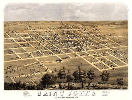 1868 Panoramic Map of Saint Johns Clinton County Michigan
