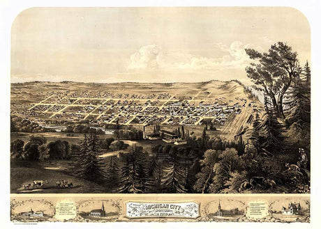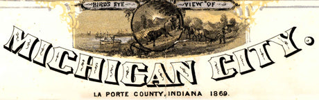 1869 Panoramic Map of Michigan City La Porte County Indiana