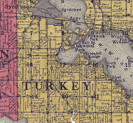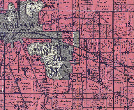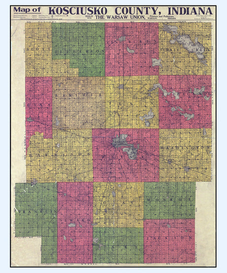 1916 Farm Line Map of Kosciusko County Indiana