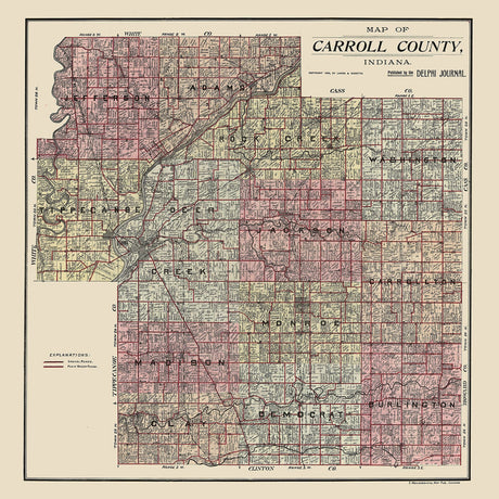 1898 Farm Line Map of Carroll County Indiana