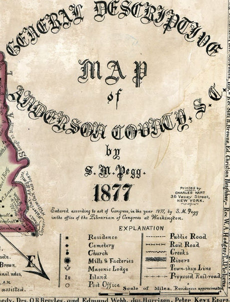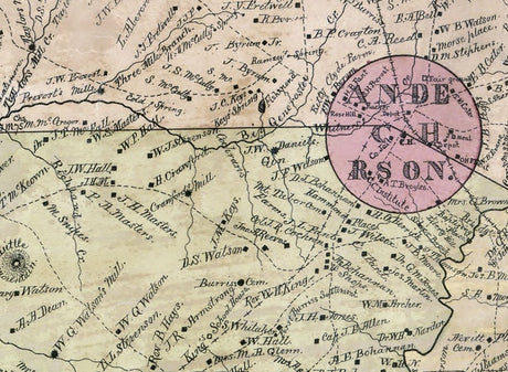 1877 Map of Anderson County South Carolina Family Names