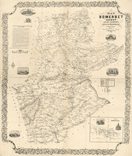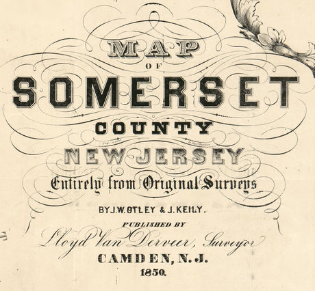 1850 Map of Somerset County New Jersey from original surveys Somerville Genealogy